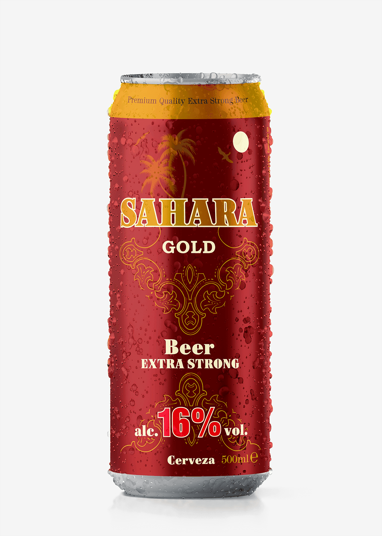 Sahara Gold Beer Extra Strong 10º is a strong beer for strong men. High-quality ingredients ensure a full-bodied, with the strongest and most delicate taste and character. A long traditional Spanish beer recipe with the best ingredients, that guarantees even without cooling an amber-brown texture, delicious bitter taste and a flavour that your customers will love. Cheers to the coolest beer for real men.